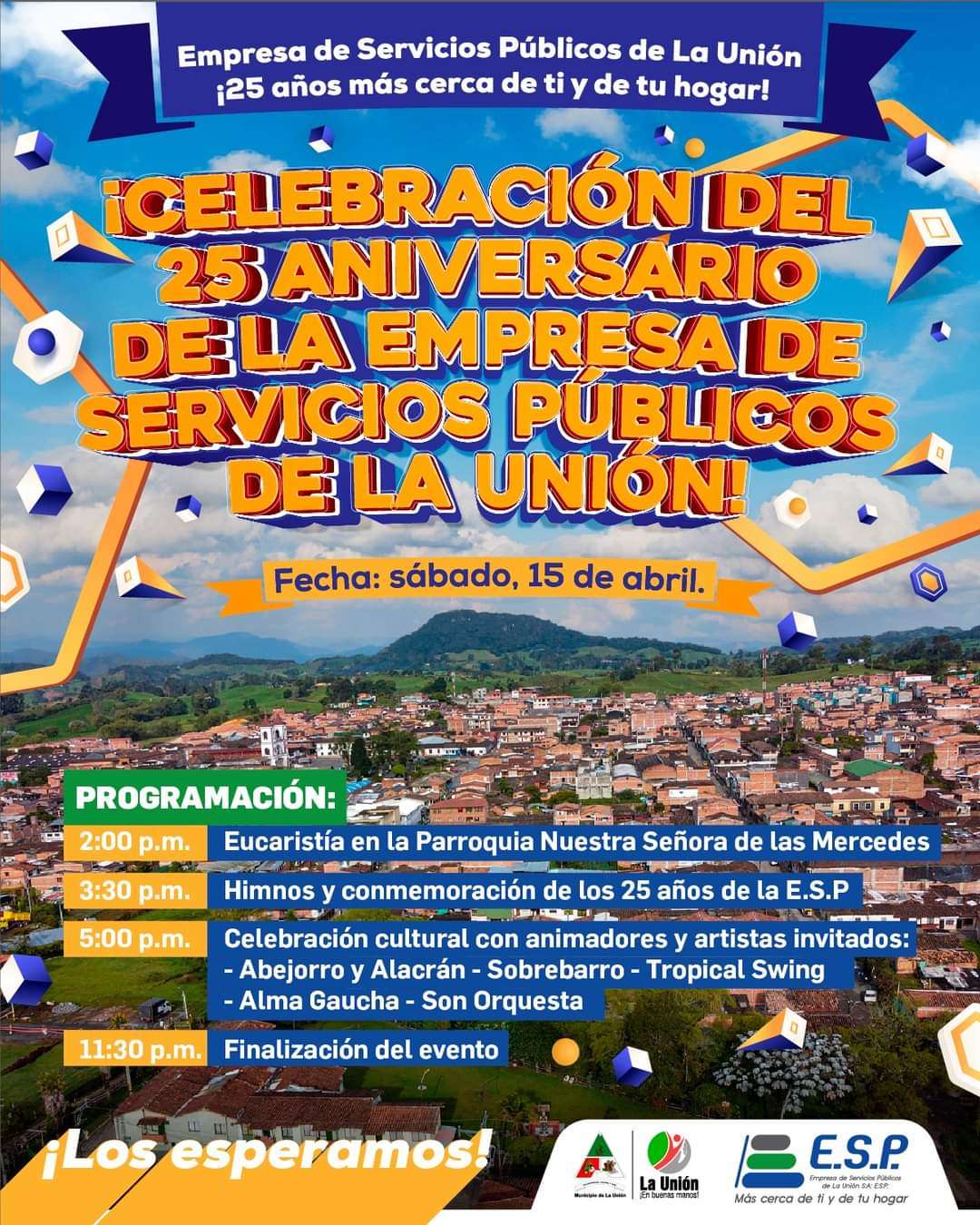Con alegría invitamos a la comunidad unitense a la celebración del 25 aniversario de la Empresa de Servicios Públicos de La Unión, donde compartiremos momentos llenos de historia, avance, gratitud y proyección de la organización.