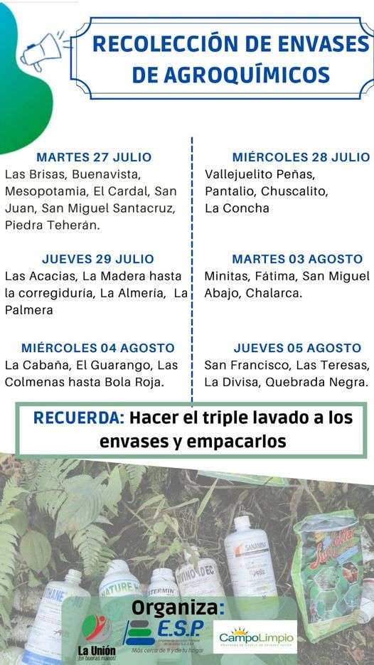 Te invitamos a realizar una correcta disposición de los residuos peligrosos los días lunes y jueves debidamente separados.