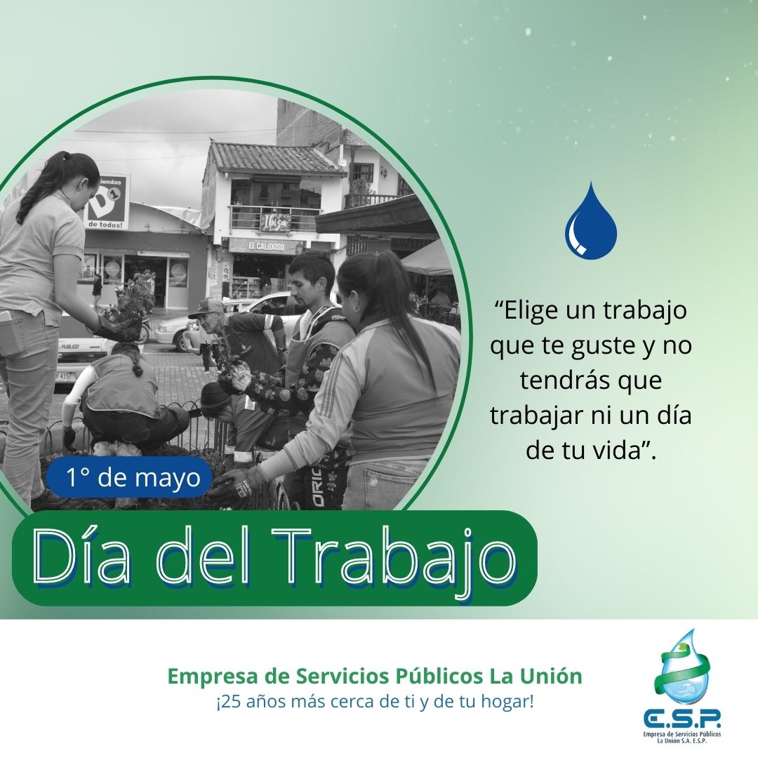 Hoy en el Día Mundial del Trabajo queremos reconocer la labor de cada uno de nuestros colaboradores, gracias por hacer parte de esta familia que se esmera por brindarle servicios de calidad a la comunidad unitense; para la E.S.P es un orgullo saber que nos siguen eligiendo para trabajar con nosotros. Recordemos que el trabajo dignifica la vida.