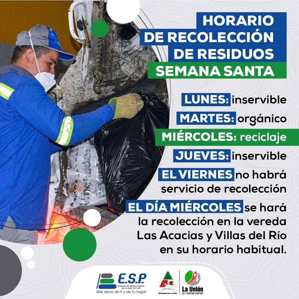 Se le informa a la comunidad unitense que la recolección de residuos en Semana Santa tendrá una modificación, es importante que se aplique este cambio para no generar desorden en las calles.