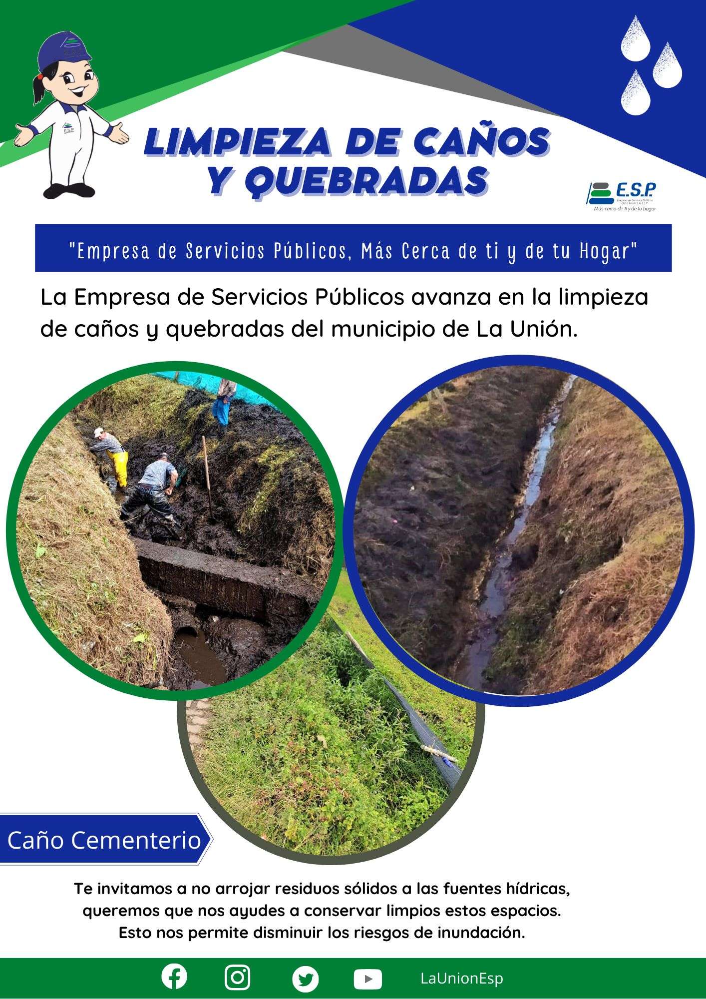 La Empresa de Servicios Públicos continúa avanzando en la limpieza de 𝗖𝗮𝗻̃𝗼𝘀 𝘆 𝗤𝘂𝗲𝗯𝗿𝗮𝗱𝗮𝘀 del municipio de La Unión.
