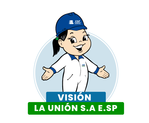 La Empresa de Servicios Públicos domiciliarios La Unión S.A. E.S.P. , será en Diciembre de 2032 líder a nivel departamental por la calidad en la prestación de los servicios públicos de acueducto, alcantarillado, aseo y servicios complementarios, orientada con criterios empresariales, económicos y sociales contribuyendo al mejoramiento esencial del medio ambiente y de la calidad de vida de los habitantes del municipio de La Unión y la región.